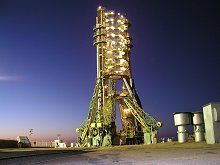 This beautiful image shows Baikonur Cosmodrome's Launch Pad #6 as it awaited the arrival of Flight ST12's Soyuz/Fregat vehicle. The servicing tower, fueling tower and support arms are all in position, while the integrated work platforms that provide access to the launcher's upper levels are illuminated by an array of lights. Flight ST12's total success was another demonstration of the availability of Russian teams in charge of Soyuz operation, managed by the Russian Aviation and Space Agency, as well as the industrial capabilities of the Samara Space Center - which produces the Soyuz launcher.