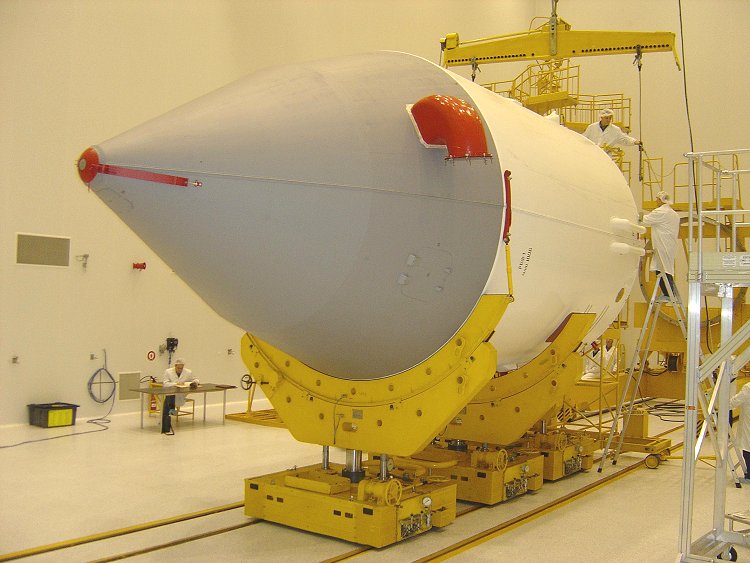 Flight ST12's payload fairing containing AMOS 2 and the Fregat upper stage is ready for its transfer from MIK 112 to the Soyuz assembly/integration building at the Cosmodrome, where the payload will be mated to its launch vehicle. The December 28 mission was the 12th commercial mission performed under Starsem responsibility, and marked the 1,684th mission for a Soyuz family vehicle. It also was the first Soyuz flight to geostationary transfer orbit.