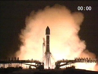 Ignition! The Soyuz launcher's four Stage 1 strap-on boosters and the Stage 2 sustainer core complete their throttle-up procedure on the launch pad prior to the vehicle's liftoff at 2:30 a.m. local Baikonur Cosmodrome time on December 28. Flight ST12's AMOS 2 satellite payload was deployed at 6 hours, 47 minutes into the mission, following three burns by the Fregat upper stage. AMOS 2 was built by the MBT Space Division of Israel Aircraft Industries, and will be operated by Israeli telecommunications operator Spacecom Ltd. to provide direct-to-home video broadcasting, Internet and data transmissions.